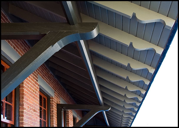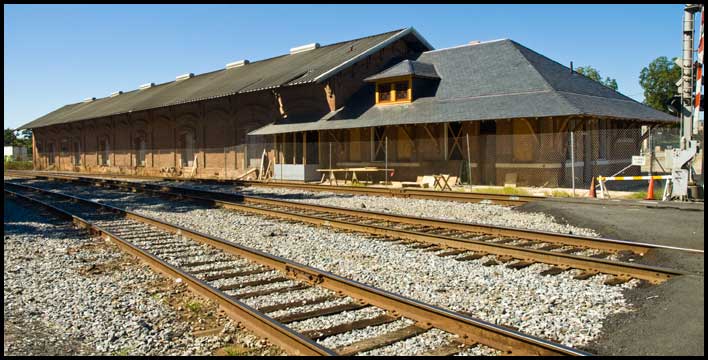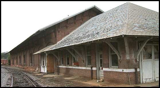 There's some uncertainty about when this depot was constructed. Some say it was 1888; others say earlier. Wilber Caldwell (see Sources & References) puts it closer to 1875. In any case, the front portion appears to be a newer addition.