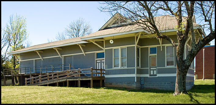 Chatsworth's 1909 Louisville & Nashville Railroad depot was moved a block to a site beside the historic Wright Hotel, which was constructed about the same time. Rehabilitated by the Whitfield-Murray Historical Society several years ago, the building now houses exhibits on the railroad and area talc mining. For more information, see this page at the society's website. |