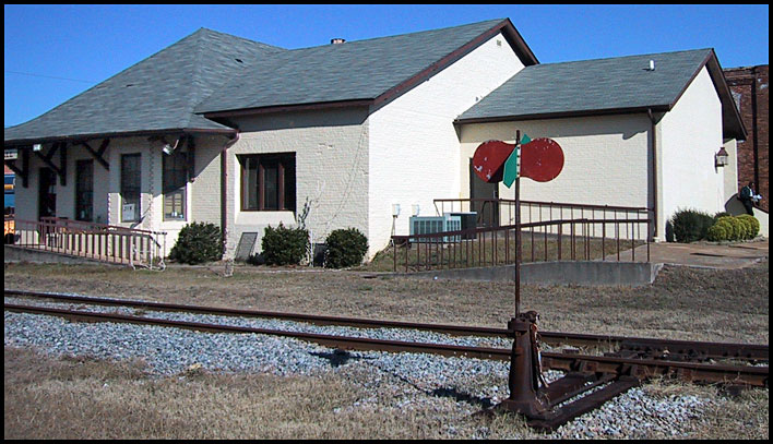 The former Macon, Dublin & Savannah Railroad depot at Jeffersonville was constructed around 1904. It appears to have lost its freight room, perhaps during alterations made in the early 1980s.