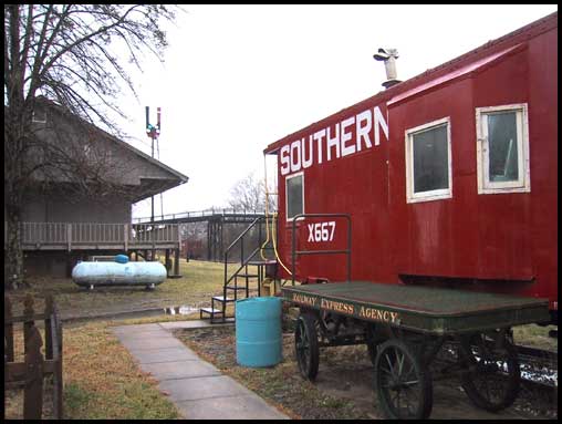 Lula's historic depot no longer stands by the tracks, but a depot-style community building and a caboose are prominent features in the town's Railroad Park alongside the former Southern Railway (now Norfolk Southern). Nearby, an old humpback bridge still crosses over the tracks. (February 2003).