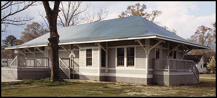 The Wayne County town of Odum lost its 1905 Southern Railway depot in 1969 when it was moved to nearby Jesup for conversion to a residence. Those plans didn't work out and the building was moved in 1984 to Jesup's wastewater treatment plant, where it continued to deteriorate. In October of 2002, thanks to Transportation Enhancement funds and the hard work of several Odum citizens, the depot was moved back to Odum and rehabilitated for a new life as a community center.