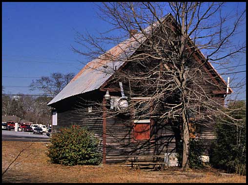 This little wooden building at Riverdale is said to be the former depot for the Southern Railway line that once ran through town. Connecting Atlanta and Fort Valley, the line was abandoned in this area in 1939. Riverdale is a city of 15,000 in northern Clayton County, about five miles south of Atlanta's airport.
