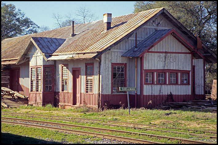 The 1893 Central of Georgia depot at Shellman was rehabilitated in the mid-1990s for use as a community center. This photo was made before the rehab, when the building was used as a furniture/cabinet shop.
