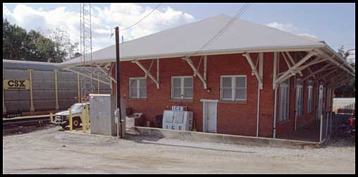 The former Georgia Railroad depot at Social Circle, built in 1913, is in use by CSX.