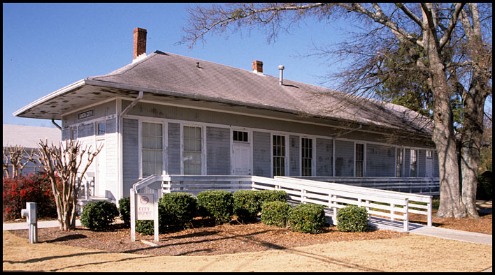 The 1908 Atlanta & West Point depot at Union City stands on Union Street near city hall. It was moved away from the tracks in 1984. Used for a time as a woman's club and as city hall, it now serves as a community center.