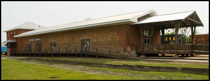 West Point's Chattahoochee Valley Railway depot was closed on December 31, 1992 after the short line railroad ceased operations. After sitting forlorn and unused for several years, it was rehabilitated for use as a visitor center and local history museum. Now exhibits tell the story of the railroad and the textile mills it served along its route in Georgia and Alabama for nearly a century.