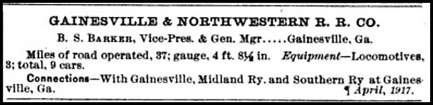 In 1917 it was operating three locomotives, two passenger cars, and seven freight cars.