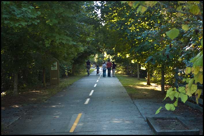 | In its early years the trail had to cross many busy roads at grade. Bridges and underpasses added since then have made the ride safer and more enjoyable. |