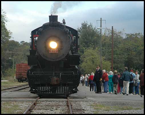 Blue Ridge Scenic Railway, Blue Ridge. Passengers take a 26-mile round trip along the scenic Toccoa River between Blue Ridge and McCaysville. The route follows an old Louisville & Nashville line. Here's a description of a trip on the train by railfan Randy Golden. • SAM Shortline, Cordele. The popular SAM Shortline excursion railroad runs from I-75 at Cordele to Plains. • Tennessee Valley Railroad Museum, Chattanooga. Among TVRR's special excursions are trips over the Chattooga and Chickamauga Railway (former Central of Georgia) in Walker and Chattooga counties. • Stone Mountain Scenic Railroad, Stone Mountain. Vintage FP7 and GP7 diesels pull open-air cars on 30-minute trips around the mountain. • Georgia Museum of Agriculture, Tifton. Travels the grounds of the 95-acre heritage village, a part of Abraham Baldwin Agricultural College. Power is provided by a 3 ft-gauge 0-4-0T engine built by Vulcan in 1917. • St. Marys Express, St. Marys. Excursions on the St. Marys Railroad in south coastal Georgia. |