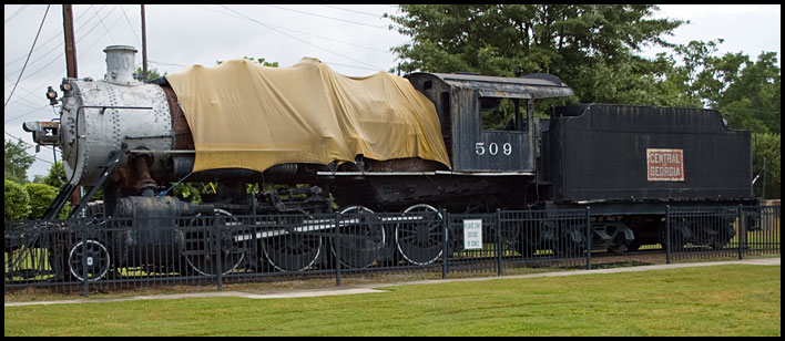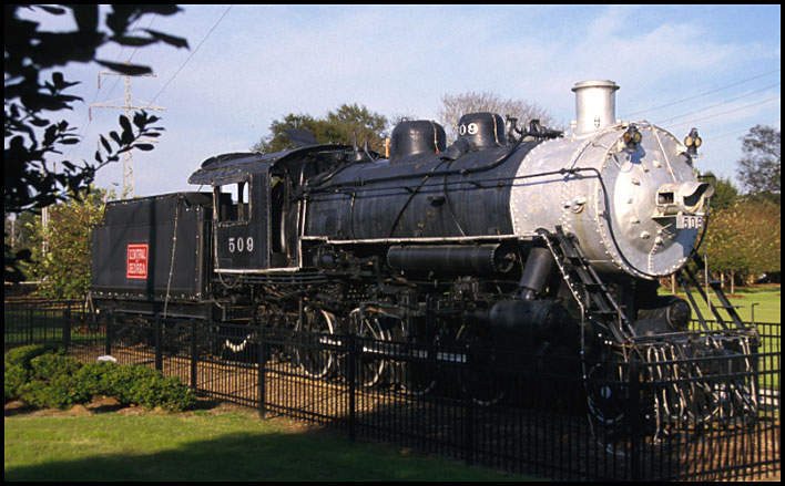 Central of Georgia No. 509, a 2-8-0 built by Baldwin in 1906, has been a feature of Macon's Central City Park since 1956. A plaque at the site honors Benny A. Scott, a community leader and the railroad's first black fireman, who worked the engine’s last run.