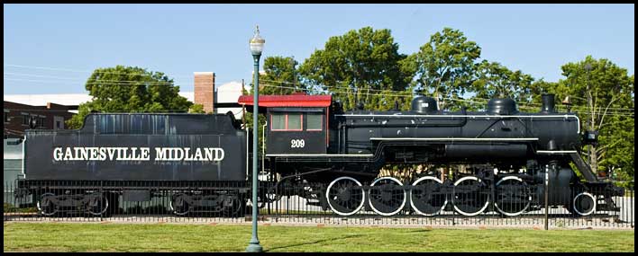 Engine no. 209 is on display a block south of the Gainesville Midland depot (2013 photo).