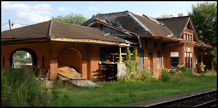 | In 2003, when this photo was made, the depot was used for storage by a farm supplies store. |
