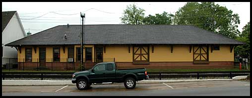 | Some years ago, a church was moved to the depot grounds. It has since been moved down the street. |