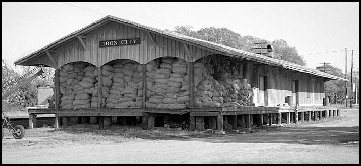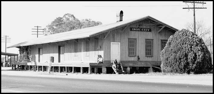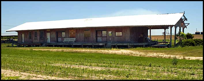 | Decades ago Iron City's Atlantic Coast Line depot was moved to the east edge of town alongside US 84. For a time it housed a feed store, and later a business named The Peach Depot. The photo above shows it as it appeared on a bright sunny day in April of 2011. |