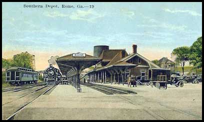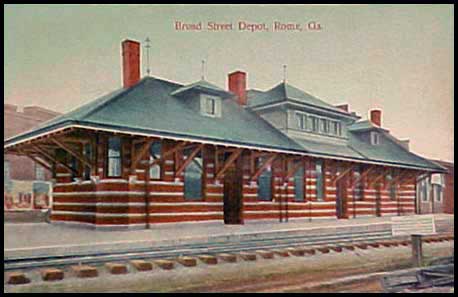 Rome also had stations serving the Central of Georgia and the NC&St.L railroads. The Central station was located at the south end of the railroad bridge now known as the Robert Redden Footbridge. (See Sanborn map).