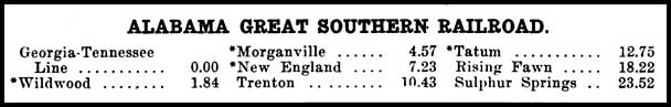 The Alabama Great Southern Railroad Company, Ltd., a British company, was organized in 1877 by railroad investor Emile Erlanger as the successor to the Alabama & Chattanooga Railroad. The A&C had completed about 230 miles of a planned 293-mile line from Chattanooga to Meridian, Miss. About 25 of these miles were in Georgia, including a section from Trenton to Wauhatchie that had been built in 1860 as the Wills Valley Railroad.