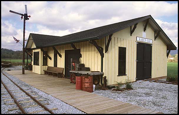 Built by students of the Rabun Gap-Nacoochee School, the museum celebrates the former Tallulah Falls Railway which once ran through Rabun Gap. Exhibits include not only TF railroad artifacts and photographs but also a full-size two-foot gauge locomotive, passenger car, flat car, caboose and tracks constructed by the students under the direction of industrial technology teacher Dess Oliver. |
