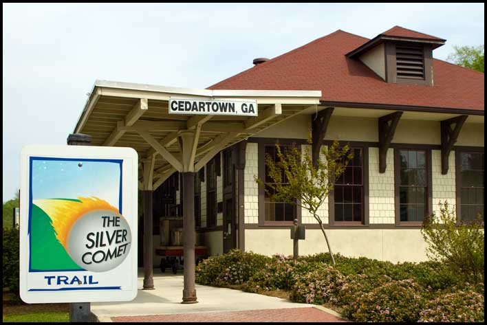 | Cedartown's trailhead is this replica of the town's Seaboard depot. All of the original depots along the route have been lost. |