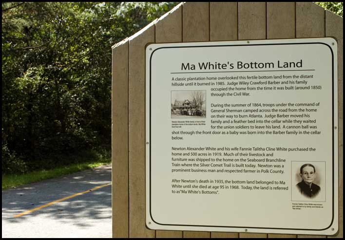 The oldest part of the trail is the 37-mile section between Mavell Road, in southern Cobb County, and the Polk County town of Rockmart. Abandoned by Seaboard successor CSX in 1988-89, it was gradually converted during the 1990s into a popular recreational asset. In 2003 the section from Cedartown to the state line opened to riders; it had been abandoned at the same time as the eastern section but had faced greater difficulties in funding and support. |