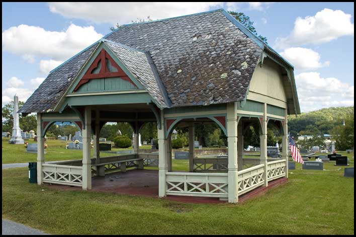 | The trail passes the city cemetery on the west side of downtown Rockmart. Be sure to walk or pedal around the hill to see its Victorian-era pavilion. |