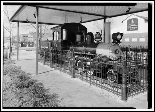 This narrow-gauge (36-inch) 2-6-0 locomotive, built in 1916 by Glover Machine Works of Marietta, sits across the tracks from Marietta’s old passenger depot. Constructed as Glover No. 81421, it was sold to the Coulbourn Bros. Lumber Company of Suffolk, Virginia, which operated it as No. 4. In 1923 it was returned to Glover. It was restored in 1991-92. In the 1990s, much of the Glover locomotive-building tools and equipment, along with unfinished locomotives, various parts, and company records were moved to the Southern Museum of Civil War and Locomotive History at nearby Kennesaw. There they have been assembled into a reproduction of the Glover factory, forming one of the museum's principal exhibits. |